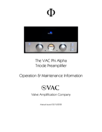 Wir stellen 1 PDF-Handbücher VAC Phi Alpha Preamplifier zum kostenlosen herunterladen nach Dokumenttypen zur Verfügung Bedienungsanleitung